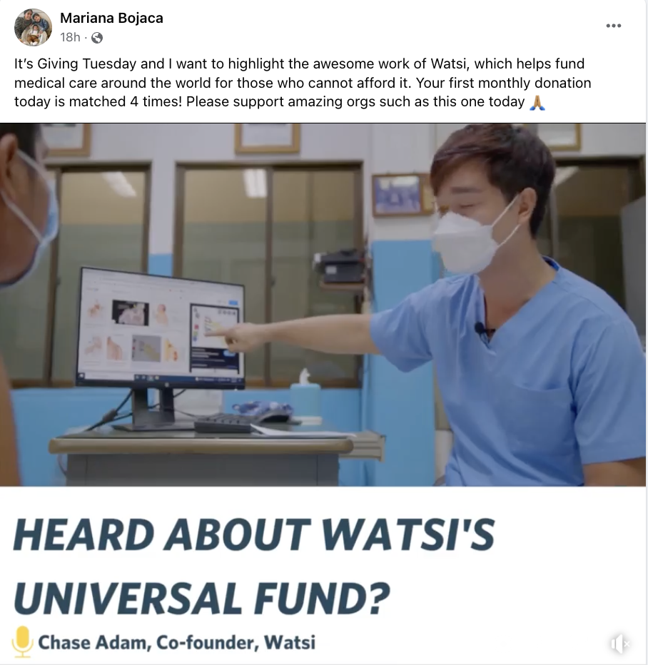 We celebrated support from our O.G. Watsi community - those who have believed in us since Day 1 like Annie and Benjamin. And, we felt so lucky to welcome Zachary who joined in on Watsi for the very first time and Mariana who became the newest member of our Universal Fund supporting her first patient Kaung, a bright student from Thailand, by funding surgery to heal his left forearm. Thank you Mariana for spreading the word, it truly means the world to us. 💙