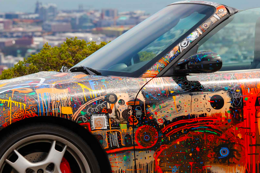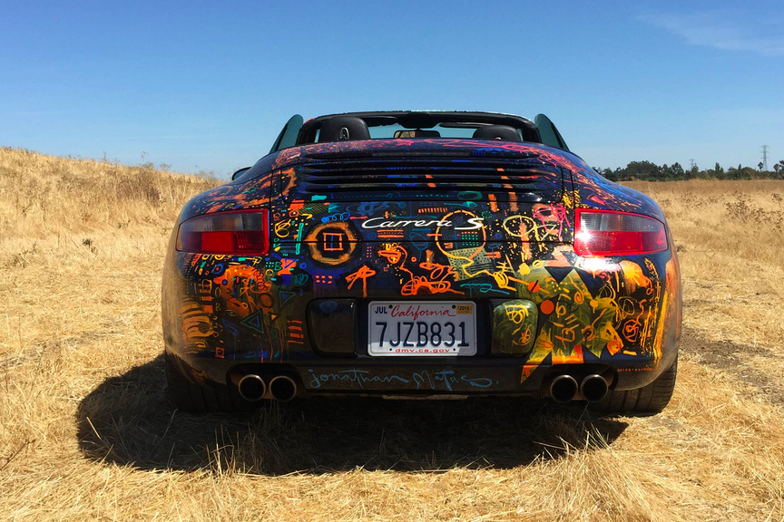 Eight months ago, Jonathan met someone who was interested in buying one of his paintings. They got into a Porsche together to look at some art, when an idea emerged. They decided that Matas would paint the Porsche itself, and they'd auction it for a starting price of $250,000 with 50% of the proceeds benefiting Watsi.