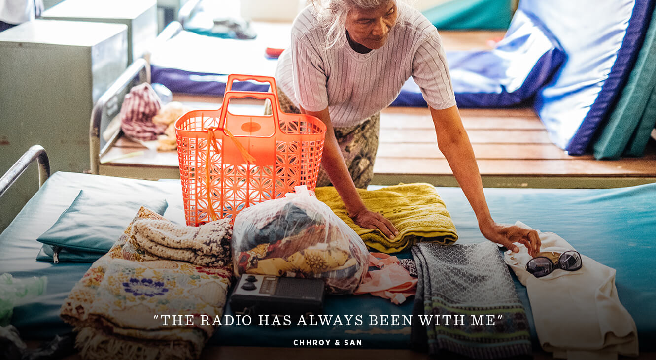 “My son, San, brought his phone so he wouldn’t get bored waiting for me. And I brought the radio. I had to leave school to help my mother so I never learned to read. The radio became my favorite thing. And when my vision was bad, I felt alone, but the radio has always been with me.”
