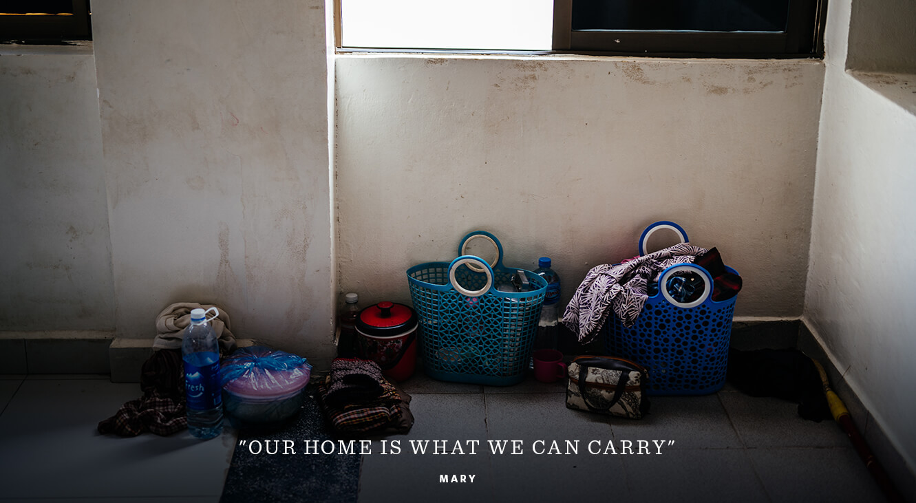 "It’s just me, my mother, my sister, and my baby. We have been homeless for a long time so we carry everything with us but it’s not much. We collect bottles on the street and sell them, so aside from a few clothes, this is everything. Our home is what we can carry."